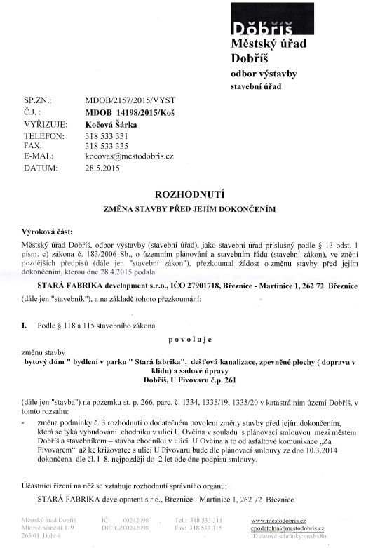 - Rozhodnutí o změně stavby před jejím dokončením - celý dokument ke stažení