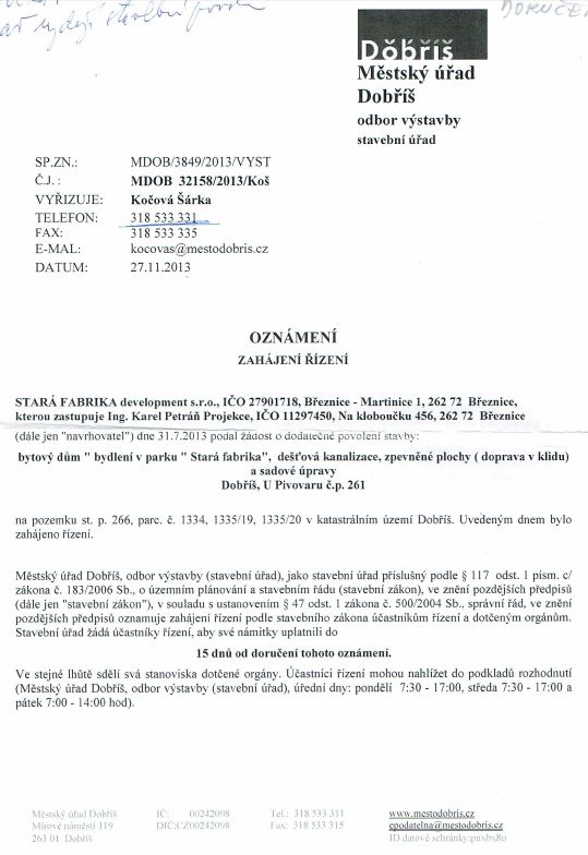 - Oznámení o zahájení řízení o dodatečném povolení stavby - celý dokument ke stažení
