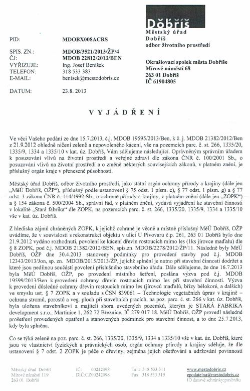 - Vyjádření k oznámení o ničení zeleně - celý dokument ke stažení
