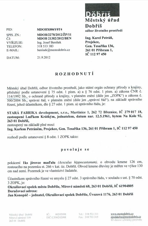 - Rozhodnutí o povolení kácení stromu - celý dokument ke stažení